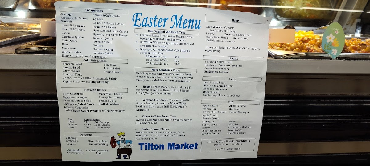 Tilton Market offers a thoughtfully curated menu that reflects its role as both a neighborhood grocery and a convenient catering option. The selection leans toward fresh, homemade, and ready-to-eat items designed for everyday enjoyment and easy meals.